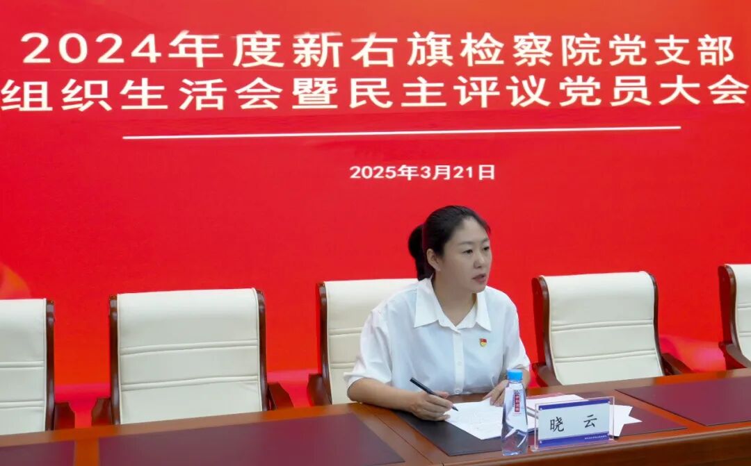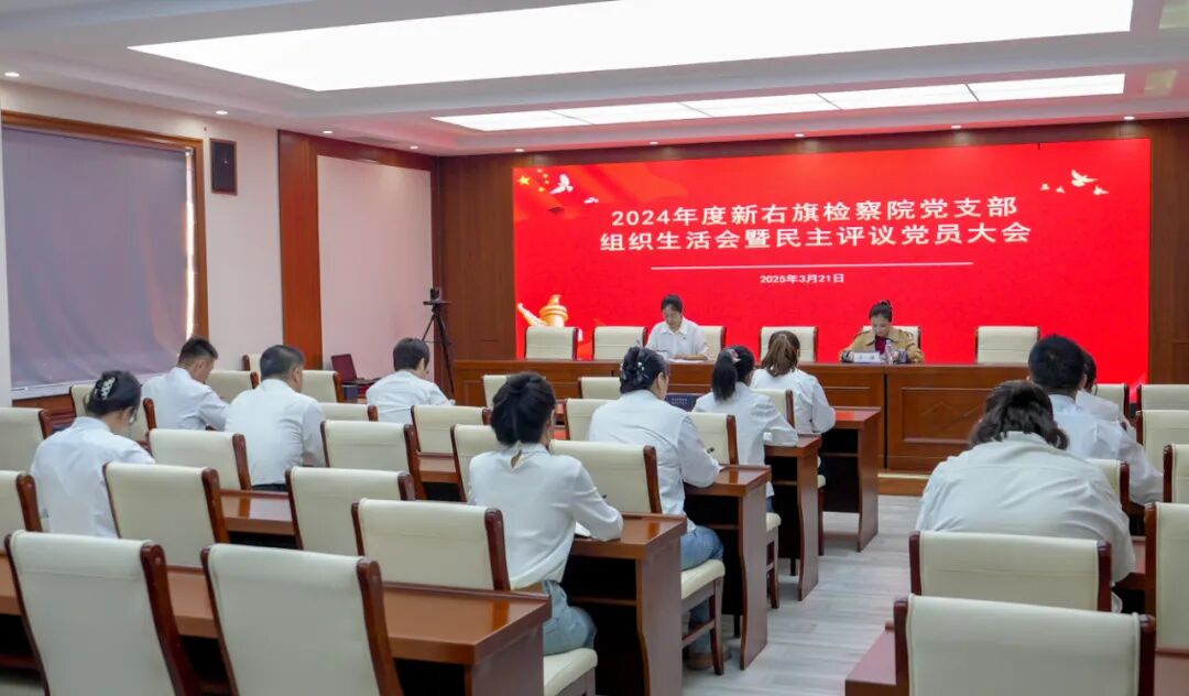 为深入贯彻落实习近平新时代中国特色社会主义思想和党的二十届三中全会精神,进一步增强党组织建设、规范党内政治生活,增强党员党性修养,近日,新右旗检察院党支部召开2024年度组织生活会暨民主评议党员大会。党支部书记晓云主持会议、派驻纪检组长于琪列席会议指导,全体党员参加。
