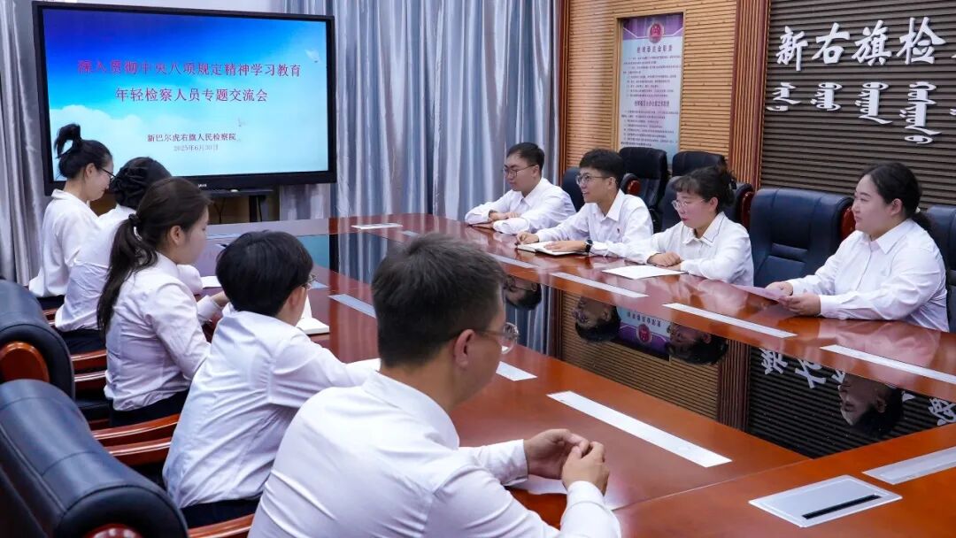 组织召开深入贯彻中央八项规定精神学习教育年轻检察人员专题交流会。会上,年轻检察人员结合自身工作实际,逐一发言,深入探讨如何将中央八项规定精神切实融入到工作和生活中。研讨中,大家真切感受到违反中央八项规定精神造成的过错不仅会给个人带来沉重的代价,还会严重损害所在单位的利益与形象,影响社会的公平正义。作为检察人员必须时刻保持清醒头脑,自觉遵守中央八项规定精神,坚决抵制各种诱惑,展现新时代检察人员在作风建设上的新担当、新作为、新形象。